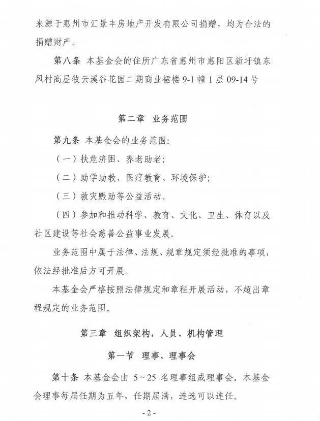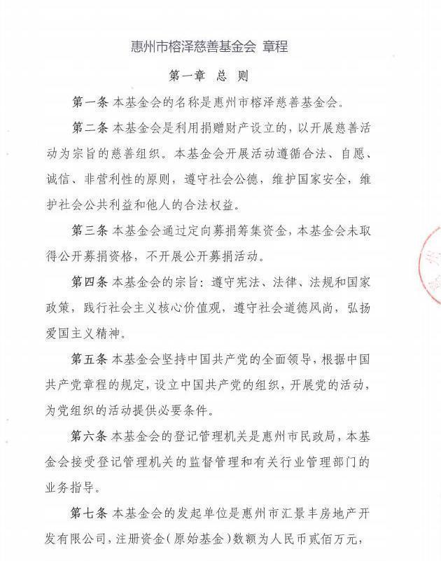 惠州市榕泽慈善基金会 章程